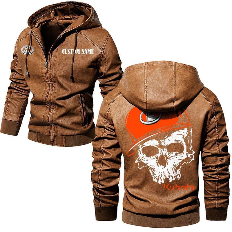 Custom Name Skull Design Kubota Leather Hoodie Jacket