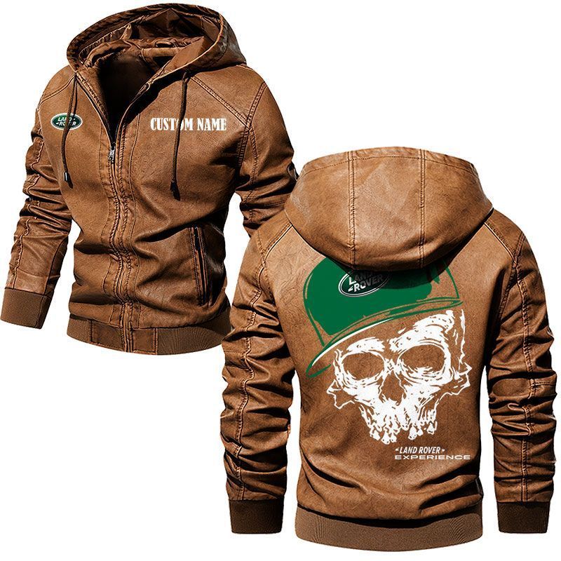 Custom Name Skull Design Land Rover Leather Hoodie Jacket