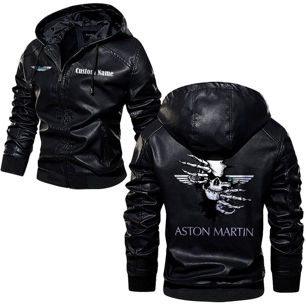 Aston Martin Custom Name Skull Biker Car Driver Personalized Leather Jacket For Men Women