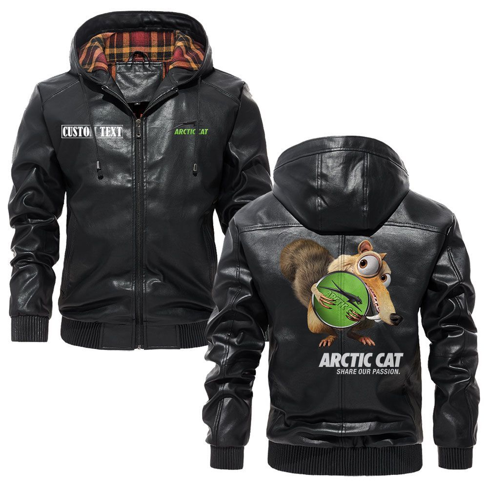Arctic cat Logo Custom Name Leather Hoodie Jacket Warm Outerwear with Ice Age Theme