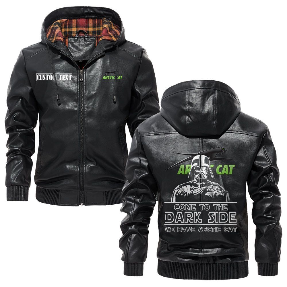 Arctic cat Logo Custom Name Leather Hoodie Jacket Warm Outerwear with Star Wars Theme
