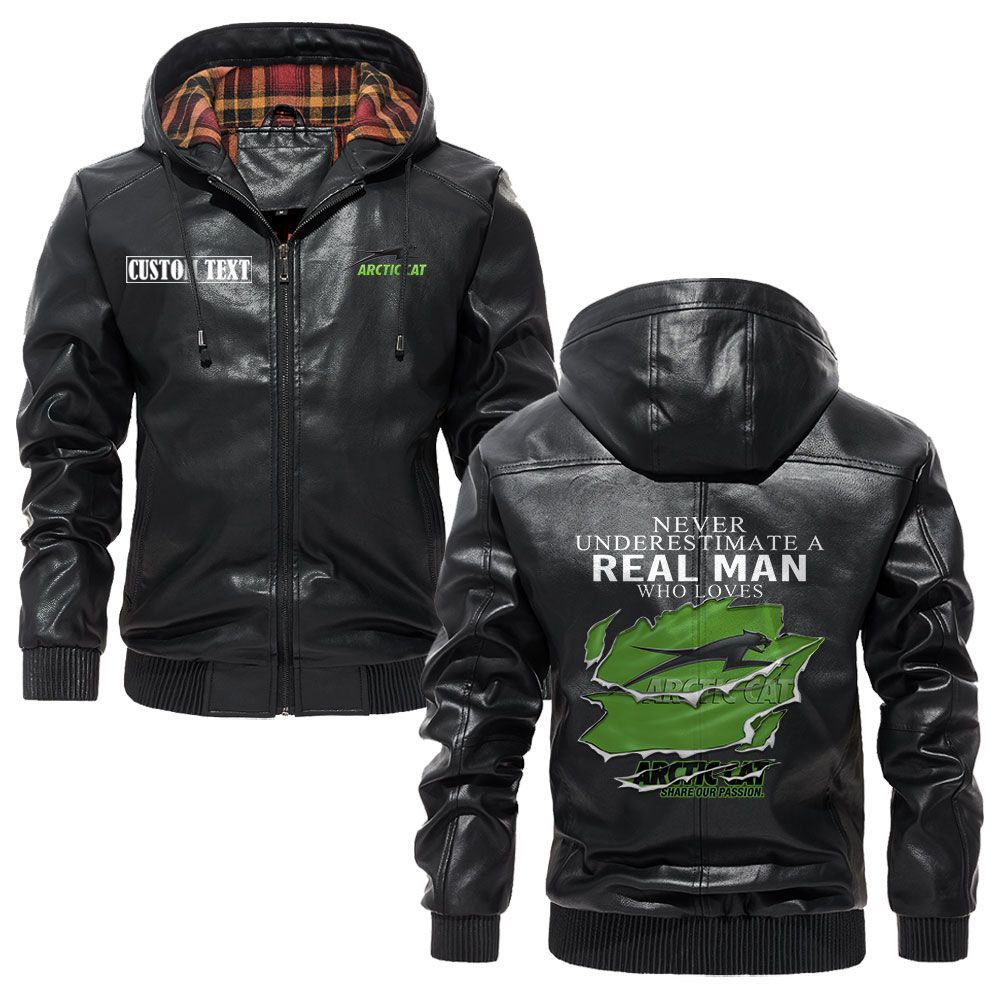 Arctic cat Logo Custom Name Leather Hoodie Jacket A Real Man Who Loves