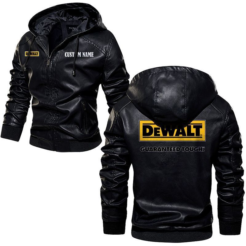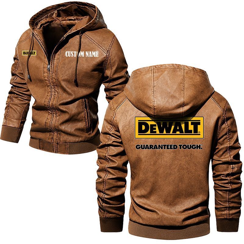 DeWalt Logo Custom Name Leather Hoodie Jacket Comfortable Personalized Outerwear