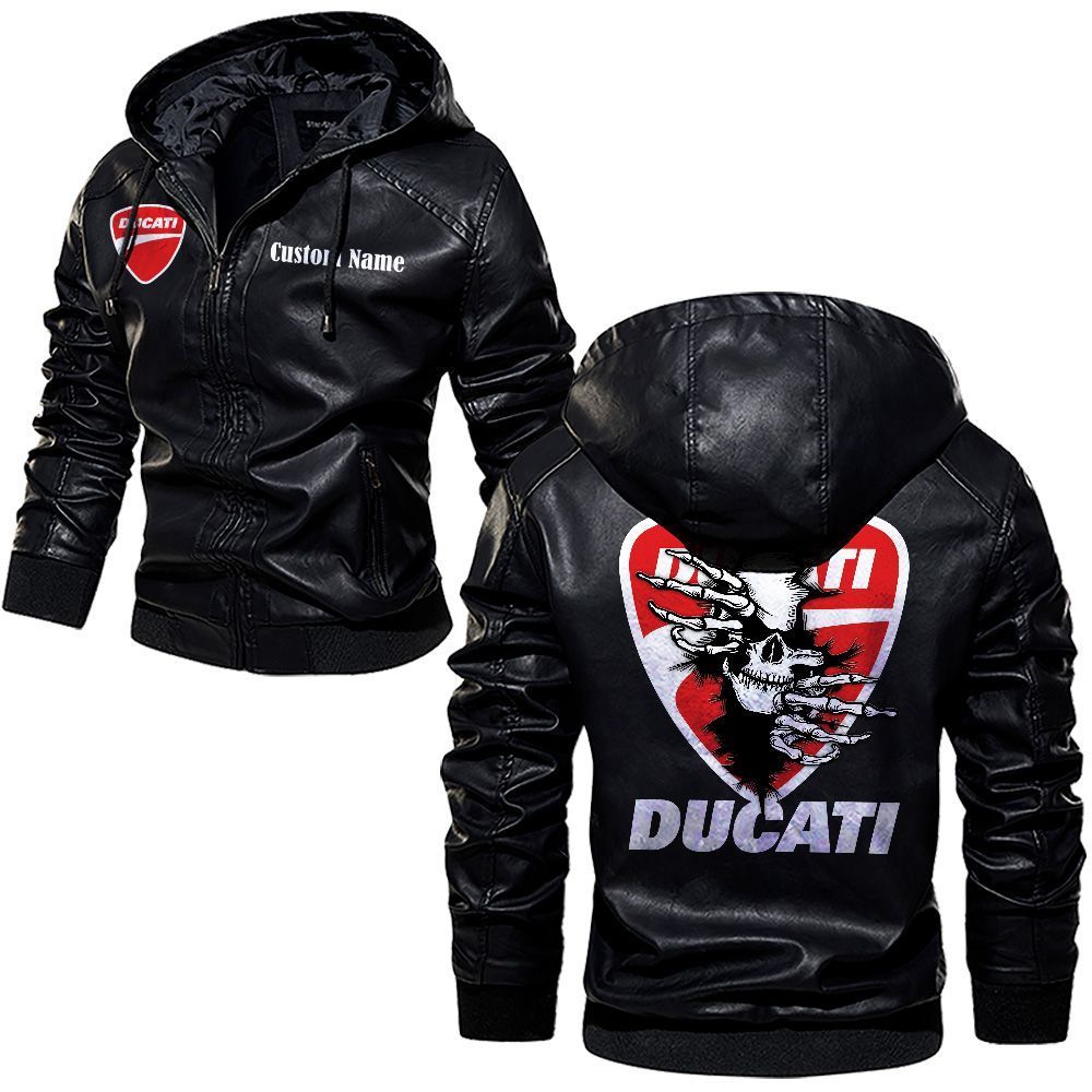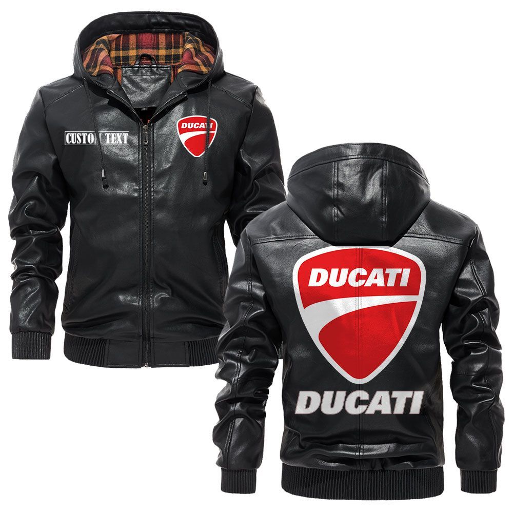 Ducati Corse Logo Custom Name Leather Hoodie Jacket Comfortable Personalized Outerwear