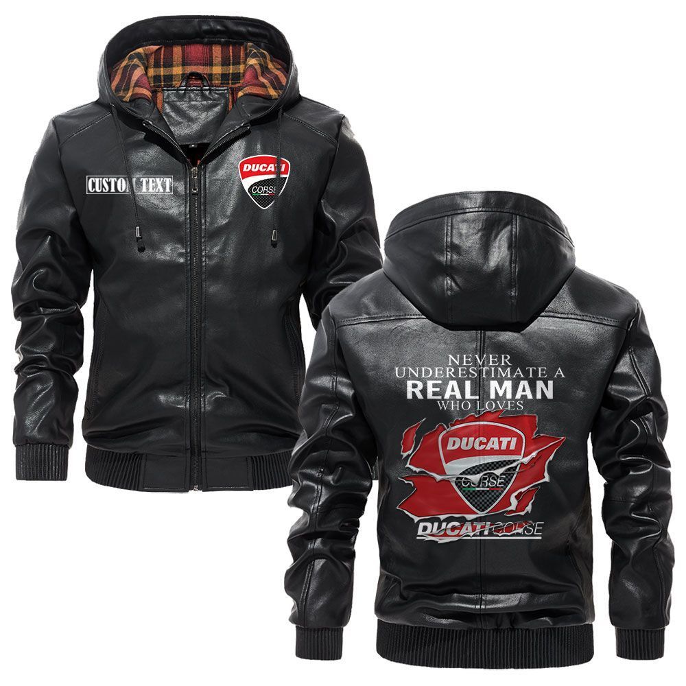Ducati Corse Logo Custom Name Leather Hoodie Jacket A Real Man Who Loves