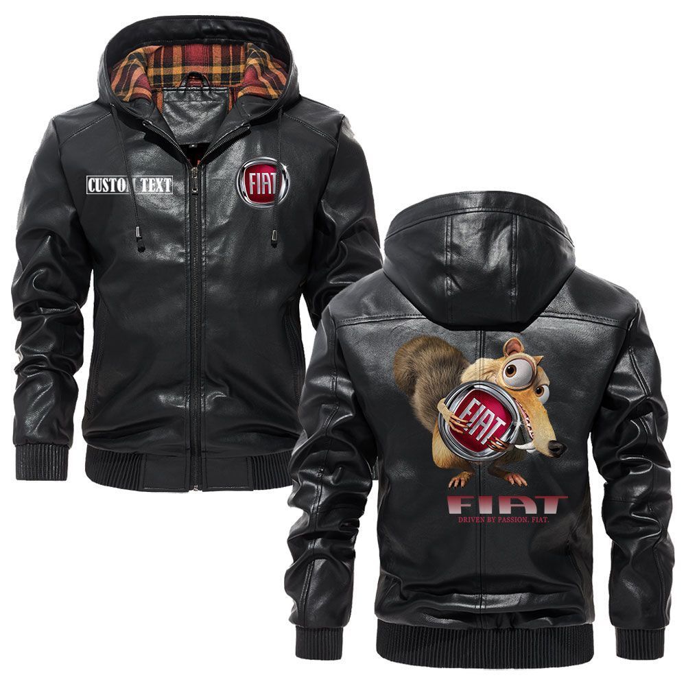 Fiat Logo Custom Name Leather Hoodie Jacket Warm Outerwear with Ice Age Theme
