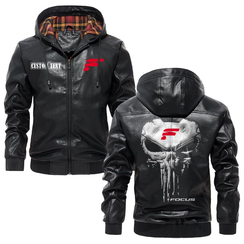 FOCUS Bikes Logo Custom Name Leather Hoodie Jacket Warm Outerwear with Punisher Skull Design