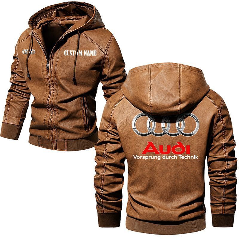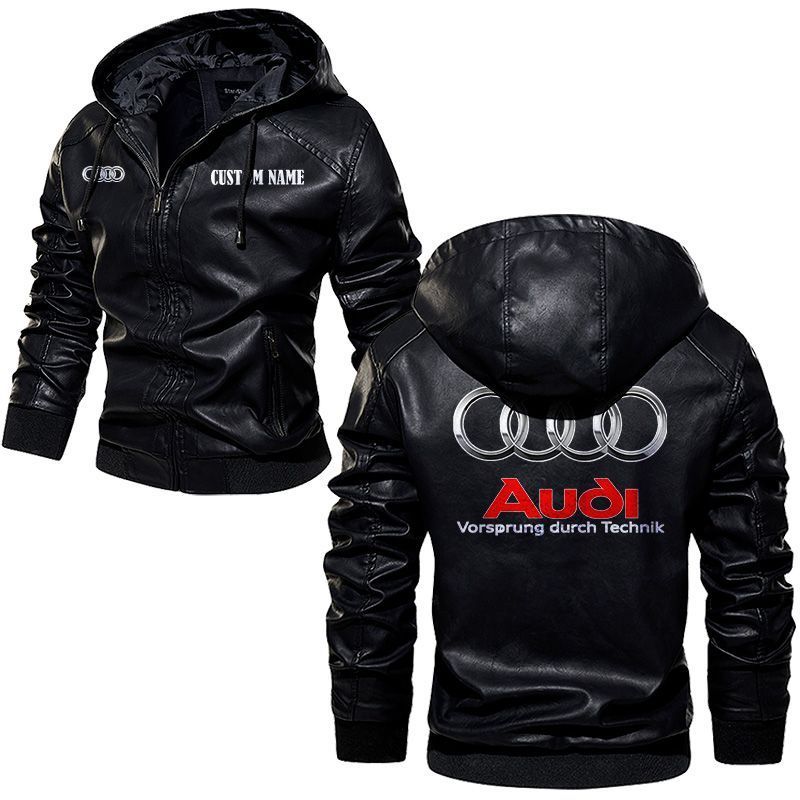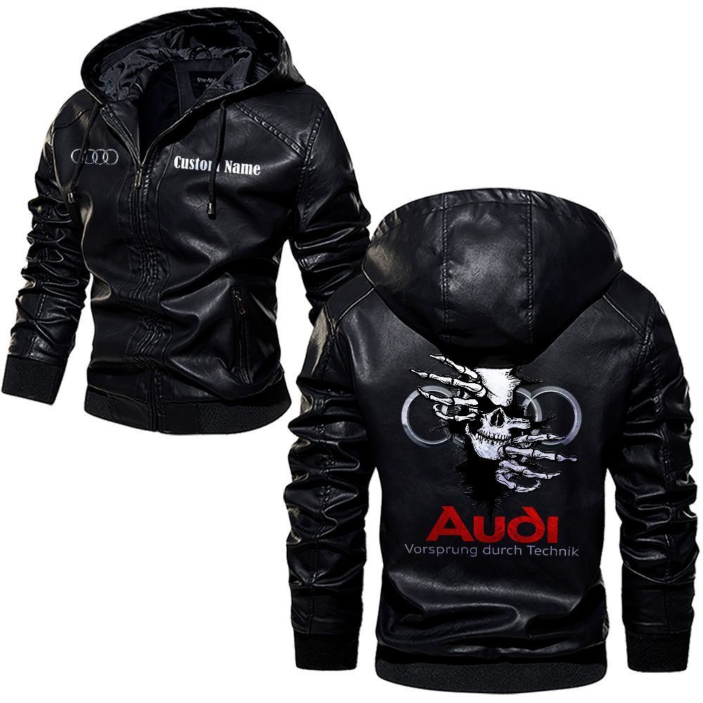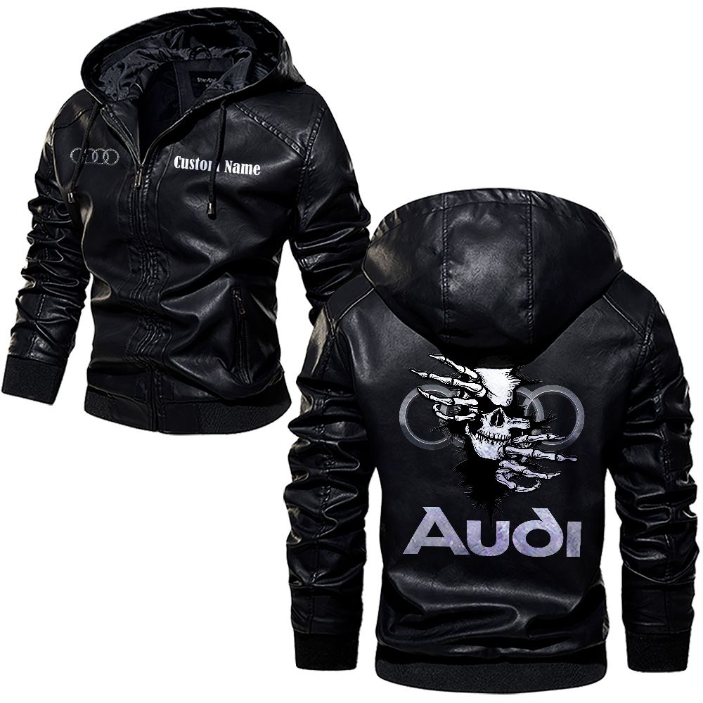 Audi Custom Name Skull Biker Car Driver Personalized Leather Jacket For Men Women