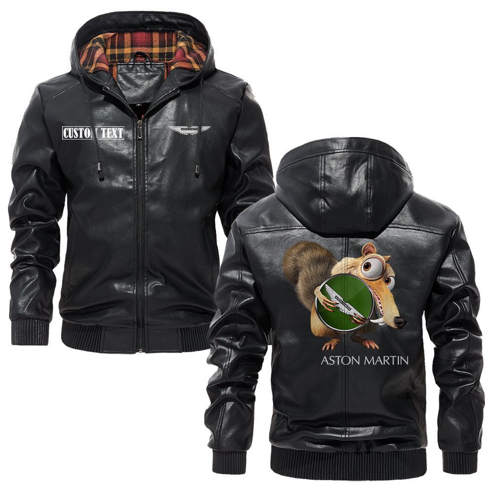 Aston Martin Logo Custom Name Leather Hoodie Jacket Warm Outerwear with Ice Age Theme