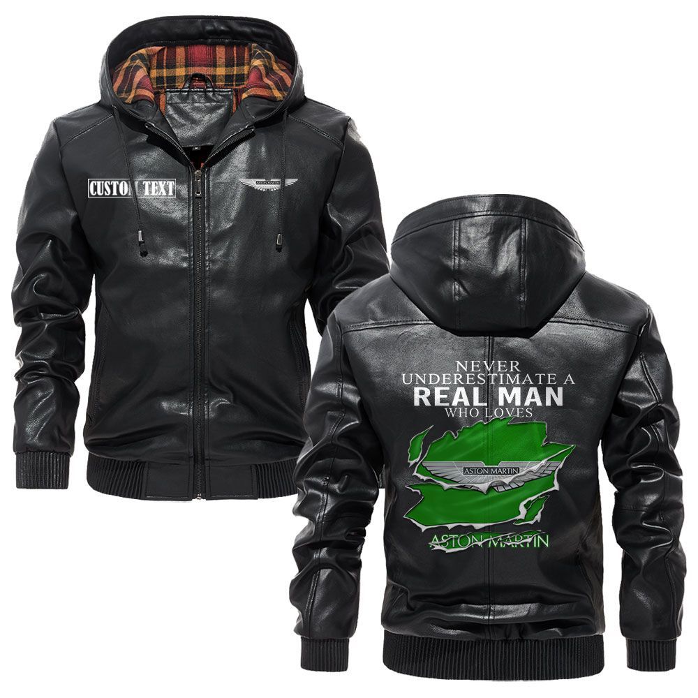 Aston Martin Logo Custom Name Leather Hoodie Jacket A Real Man Who Loves