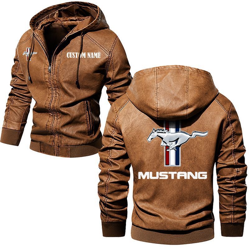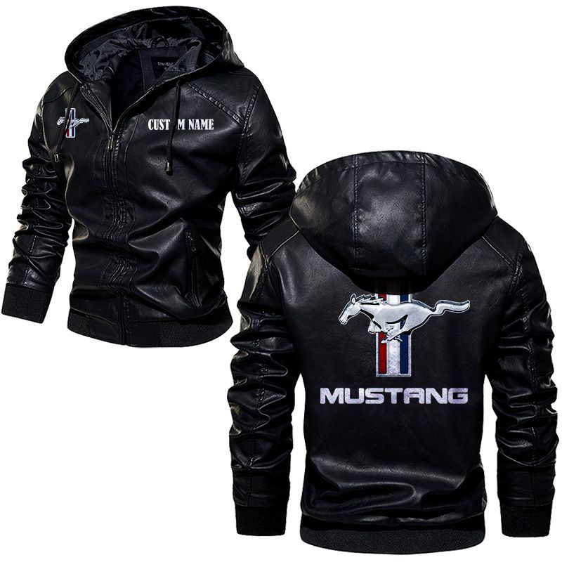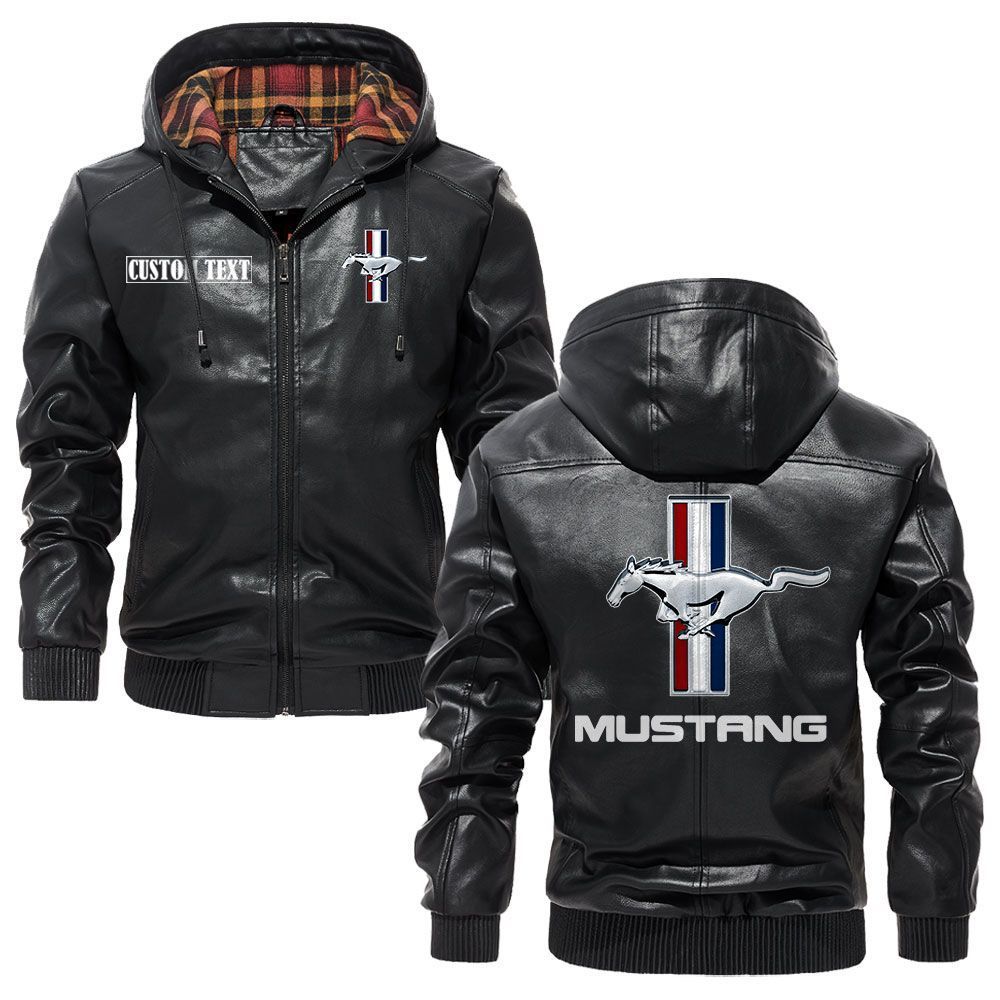 Ford Mustang Logo Custom Name Leather Hoodie Jacket Comfortable Personalized Outerwear