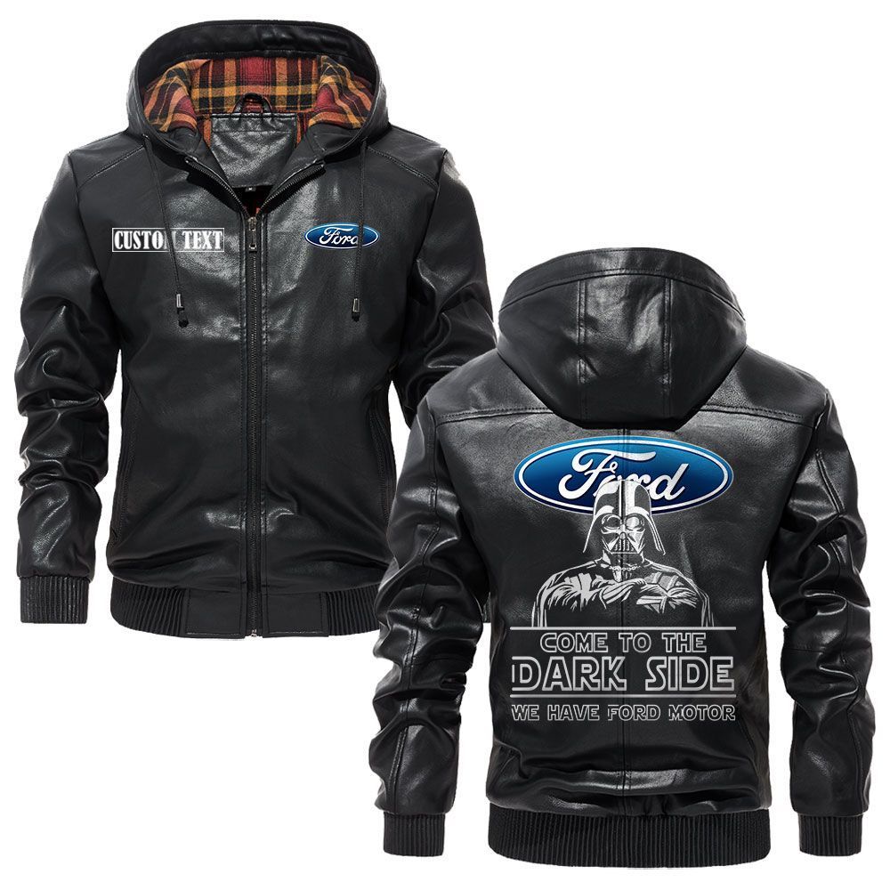 Ford Motor Company Logo Custom Name Leather Hoodie Jacket Warm Outerwear with Star Wars Theme