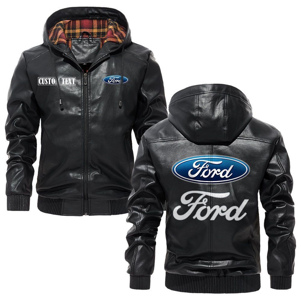 Ford Motor Company Logo Custom Name Leather Hoodie Jacket Comfortable Personalized Outerwear