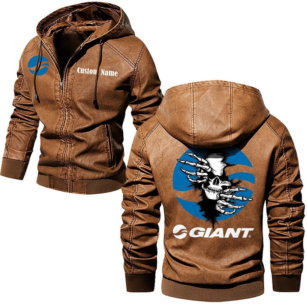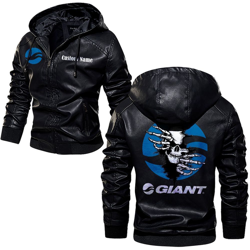 Giant Bicycles Custom Name Skull Biker Car Driver Personalized Leather Jacket For Men Women