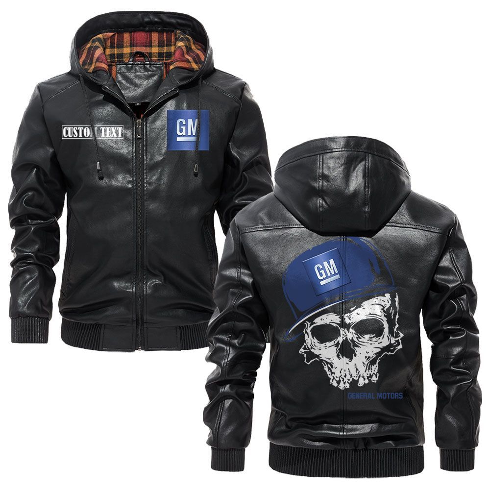 General Motors Logo Custom Name Leather Hoodie Jacket Warm Outerwear with Skull Design