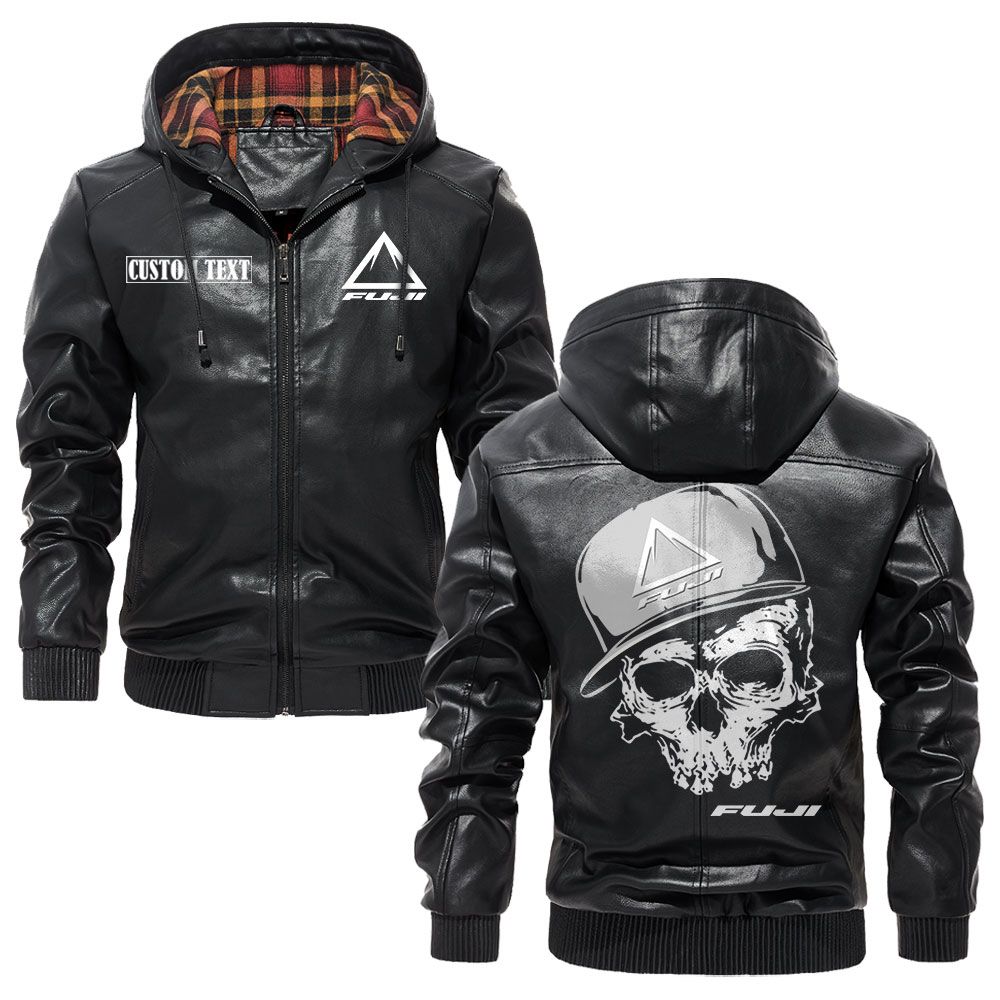 Fuji Bikes Logo Custom Name Leather Hoodie Jacket Warm Outerwear with Skull Design