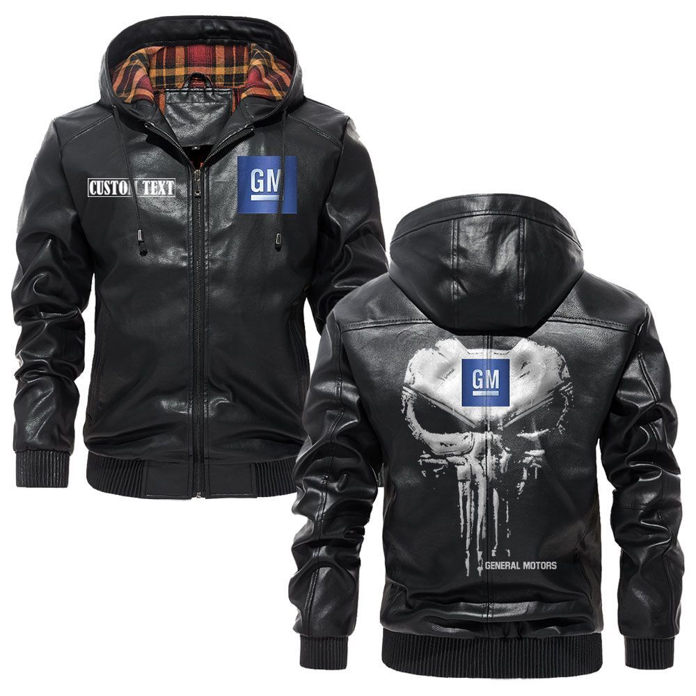 General Motors Logo Custom Name Leather Hoodie Jacket Warm Outerwear with Punisher Skull Design