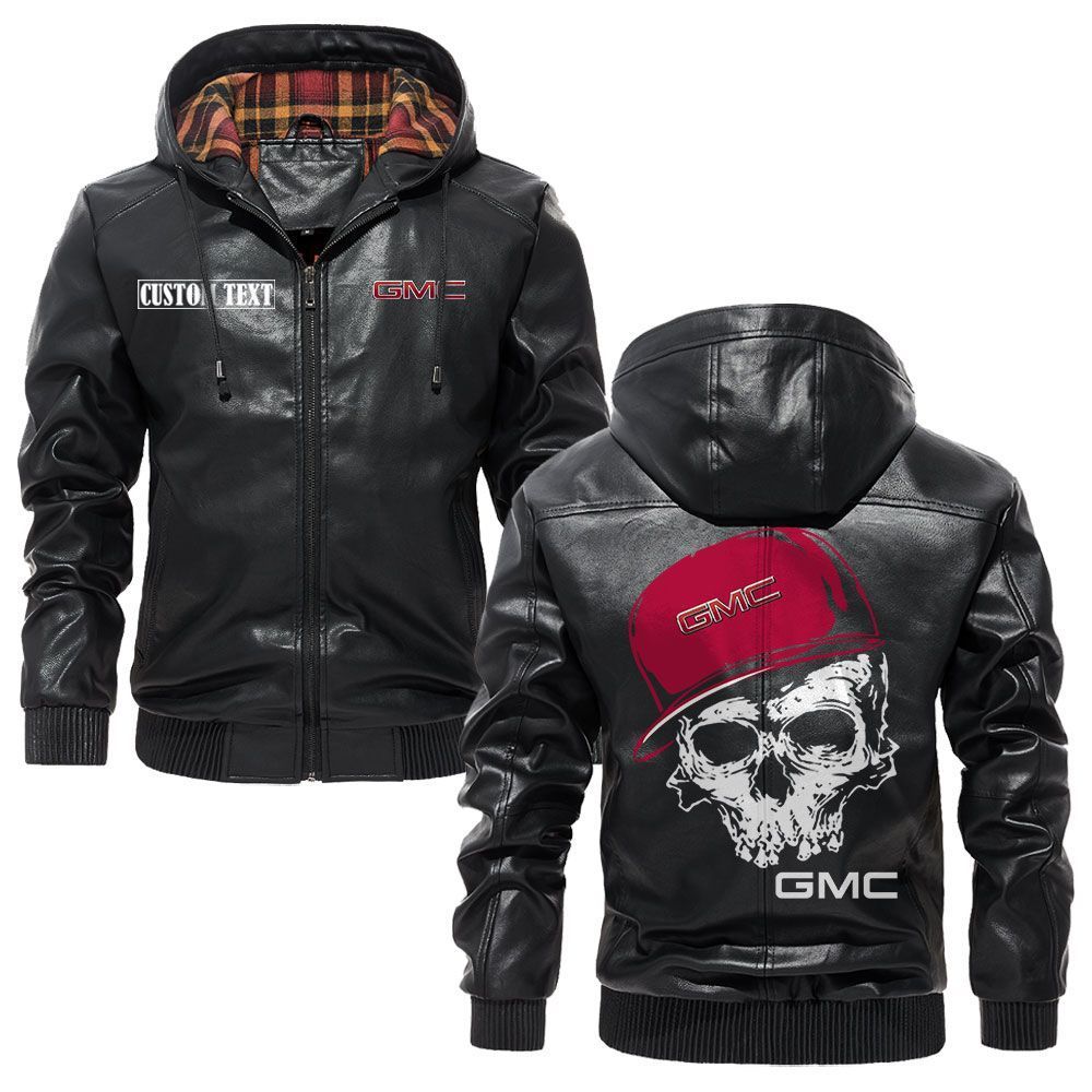 GMC Logo Custom Name Leather Hoodie Jacket Warm Outerwear with Skull Design