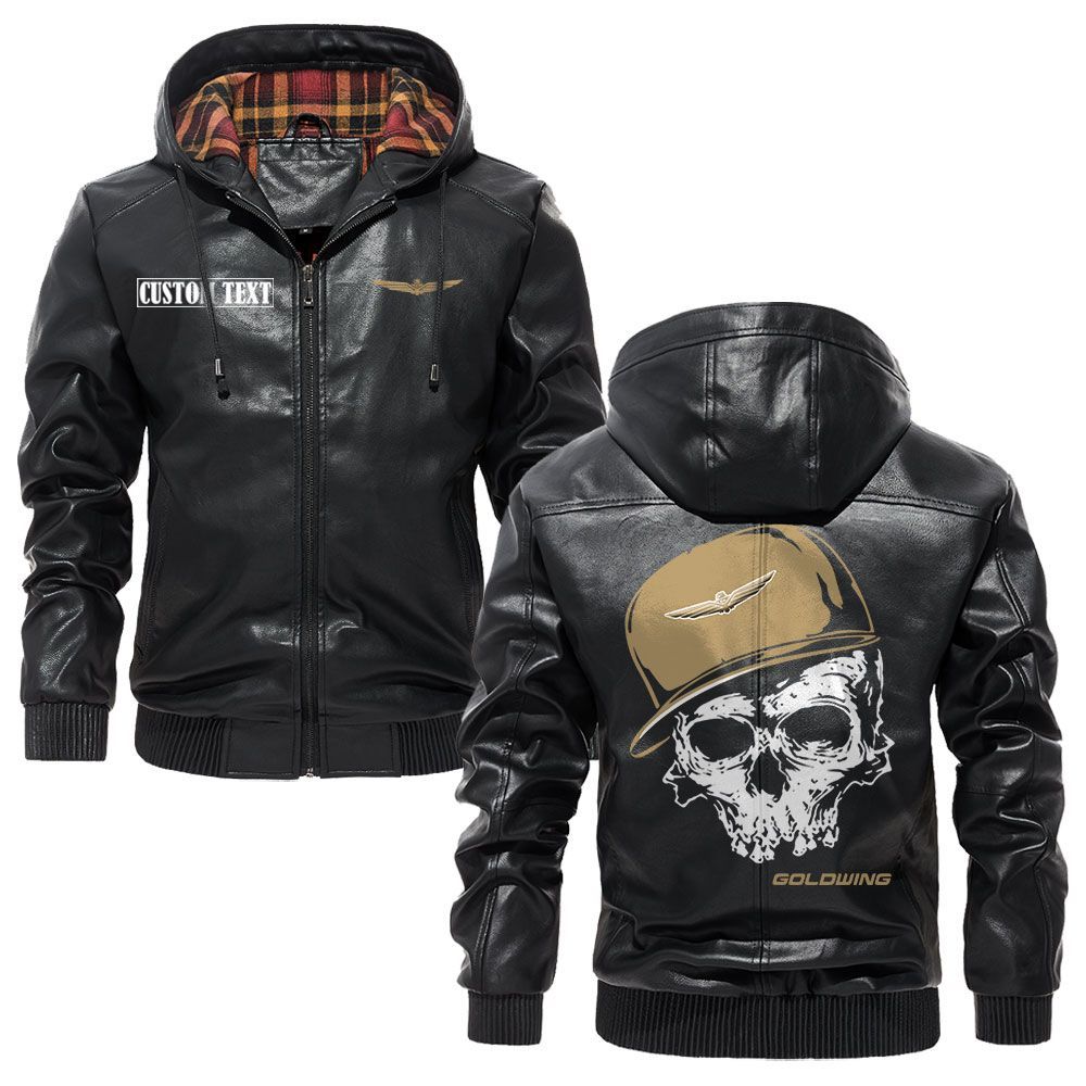 Goldwing Logo Custom Name Leather Hoodie Jacket Warm Outerwear with Skull Design