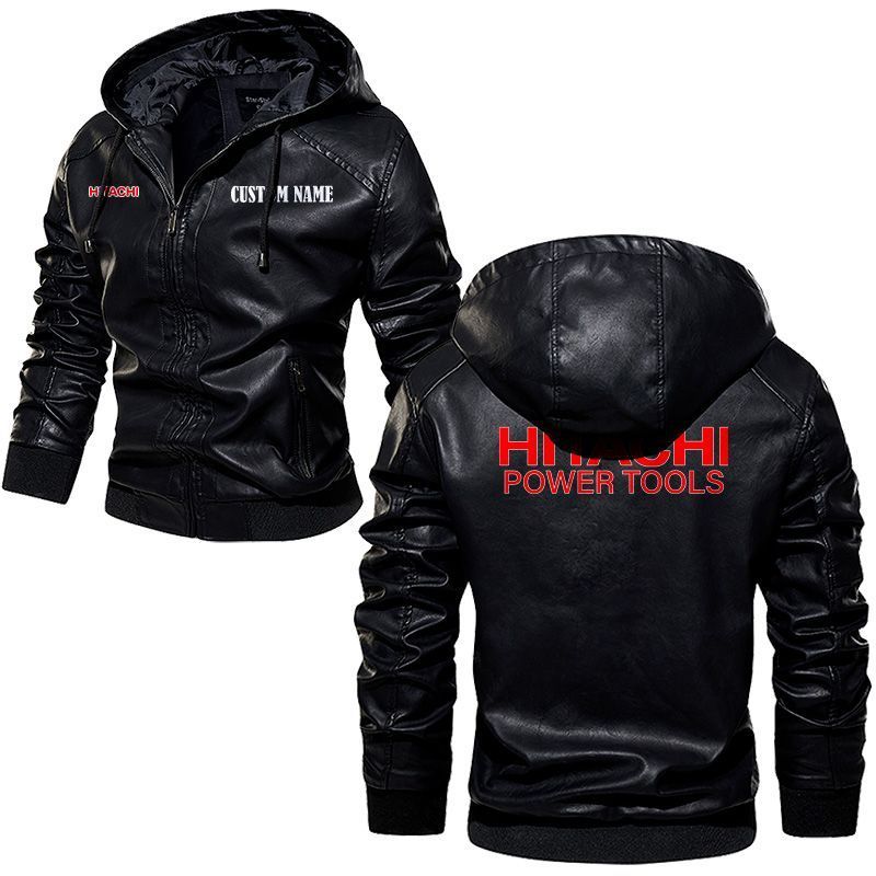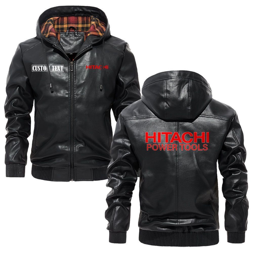 Hitachi Logo Custom Name Leather Hoodie Jacket Comfortable Personalized Outerwear
