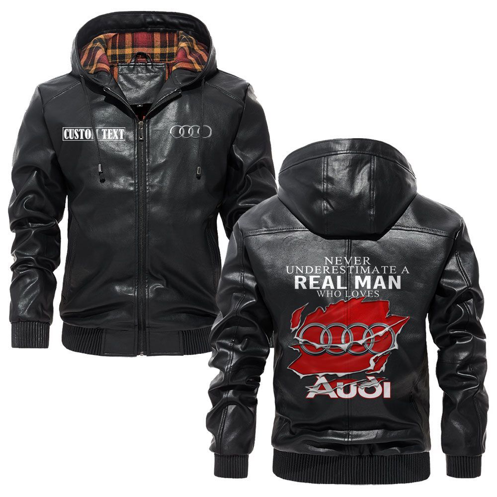 Audi Logo Custom Name Leather Hoodie Jacket A Real Man Who Loves