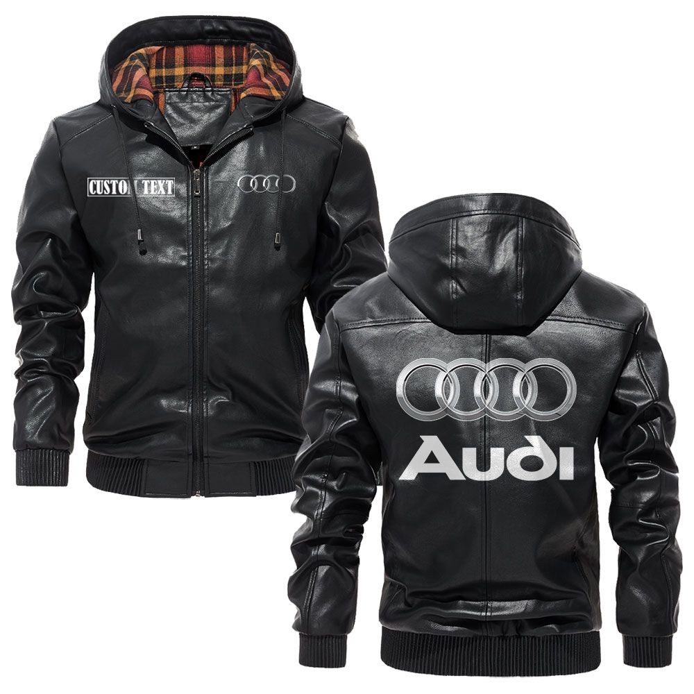 Audi Logo Logo Custom Name Leather Hoodie Jacket Comfortable Personalized Outerwear