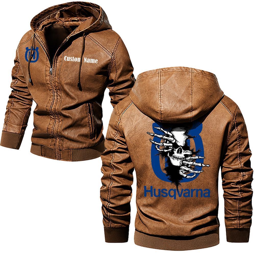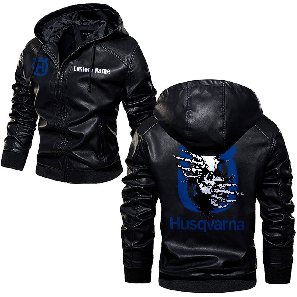 Husqvarna Logo Custom Name Leather Hoodie Jacket Comfortable Personalized Outerwear
