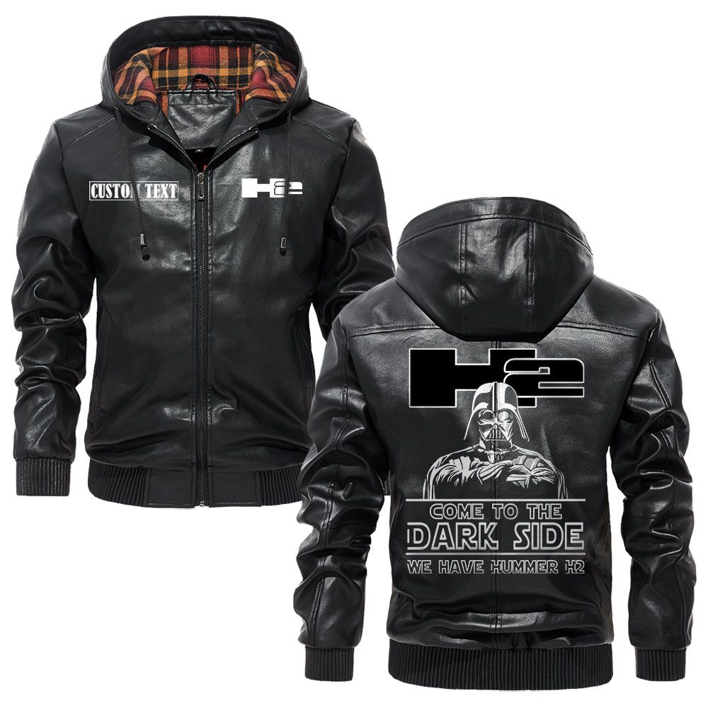 Hummer H2 Logo Custom Name Leather Hoodie Jacket Warm Outerwear with Star Wars Theme