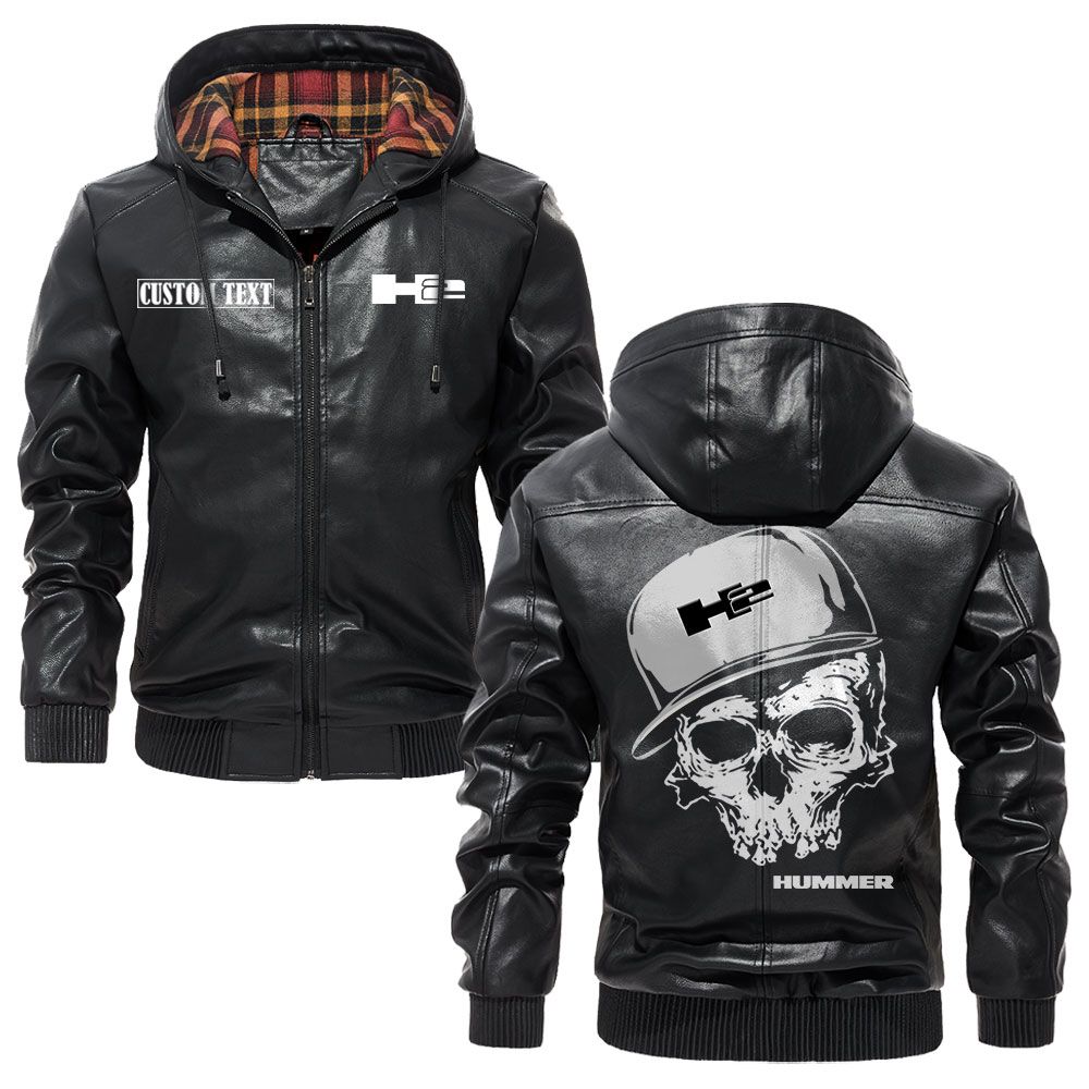 Hummer H2 Logo Custom Name Leather Hoodie Jacket Warm Outerwear with Skull Design