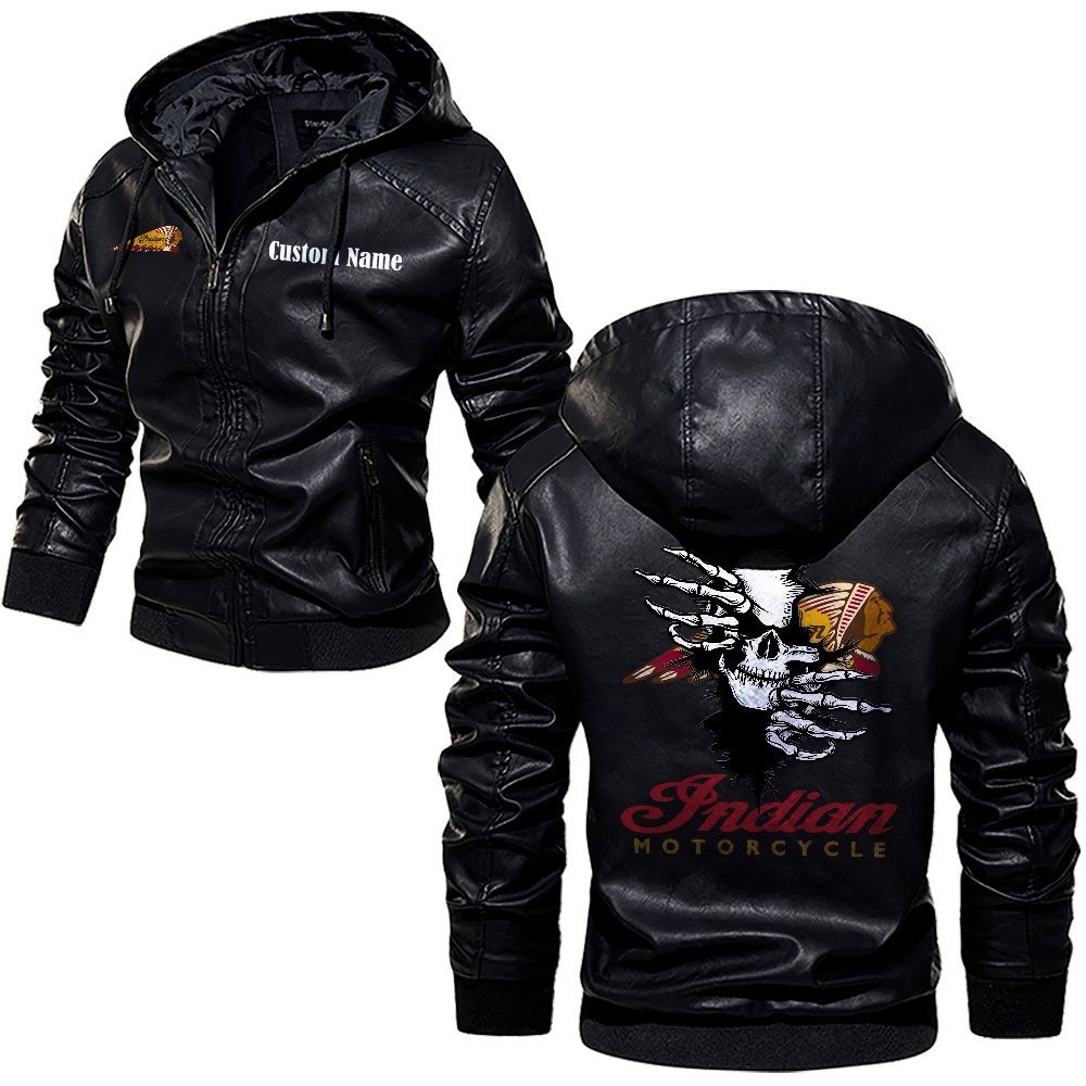Indian Custom Name Skull Biker Car Driver Personalized Leather Jacket For Men Women