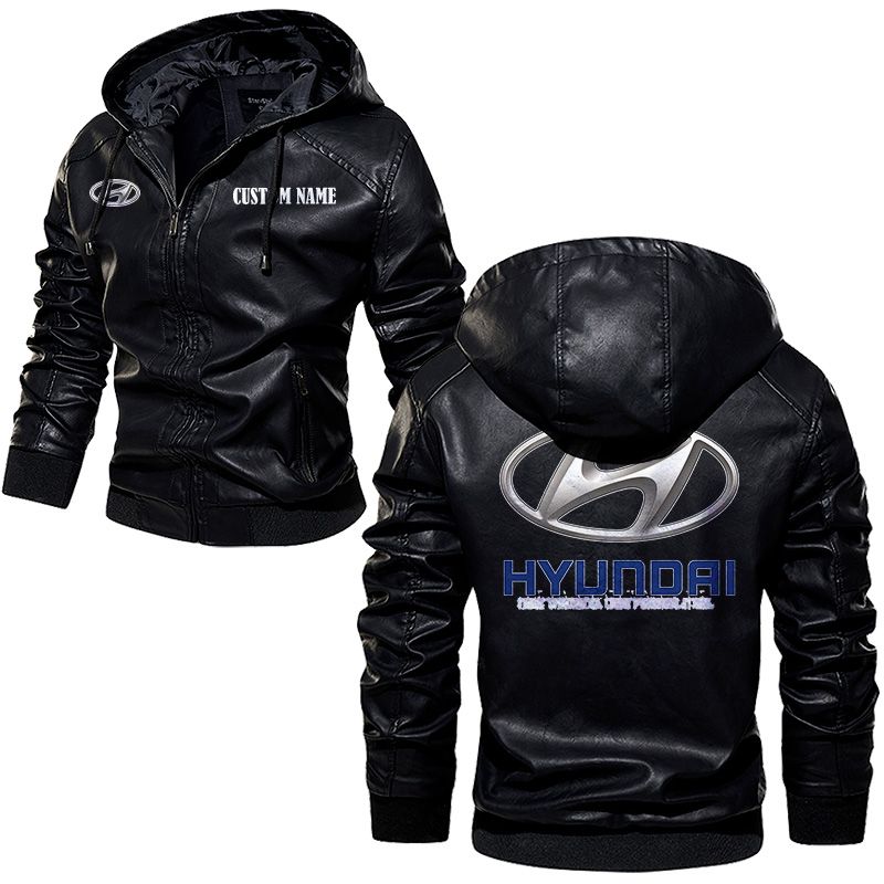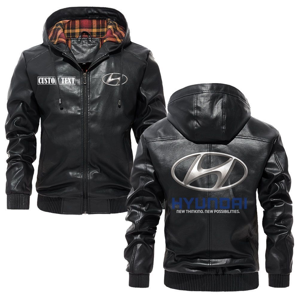 Hyundai Logo Custom Name Leather Hoodie Jacket Comfortable Personalized Outerwear