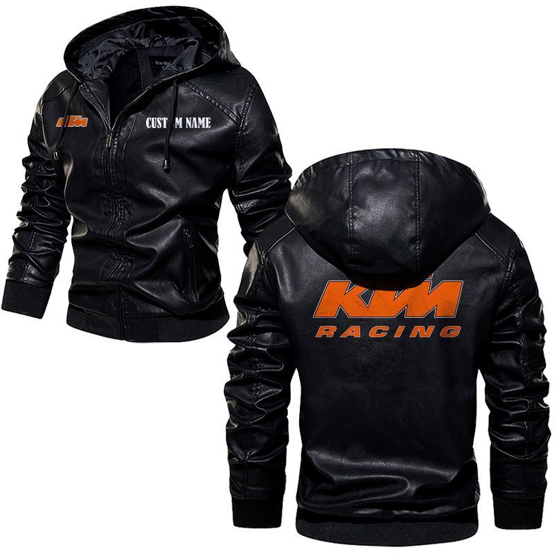 KTM Logo Custom Name Leather Hoodie Jacket Comfortable Personalized Outerwear