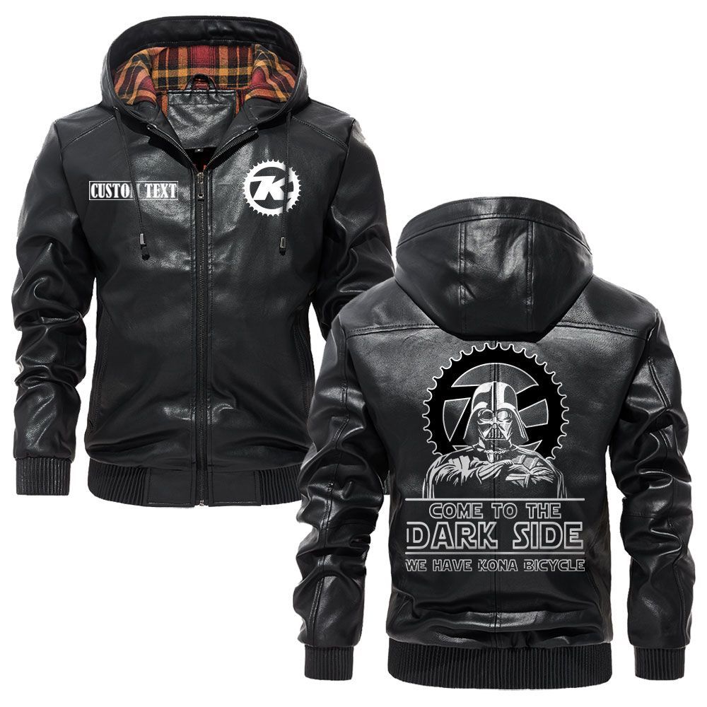 Kona Bicycle Company Logo Custom Name Leather Hoodie Jacket Warm Outerwear with Star Wars Theme
