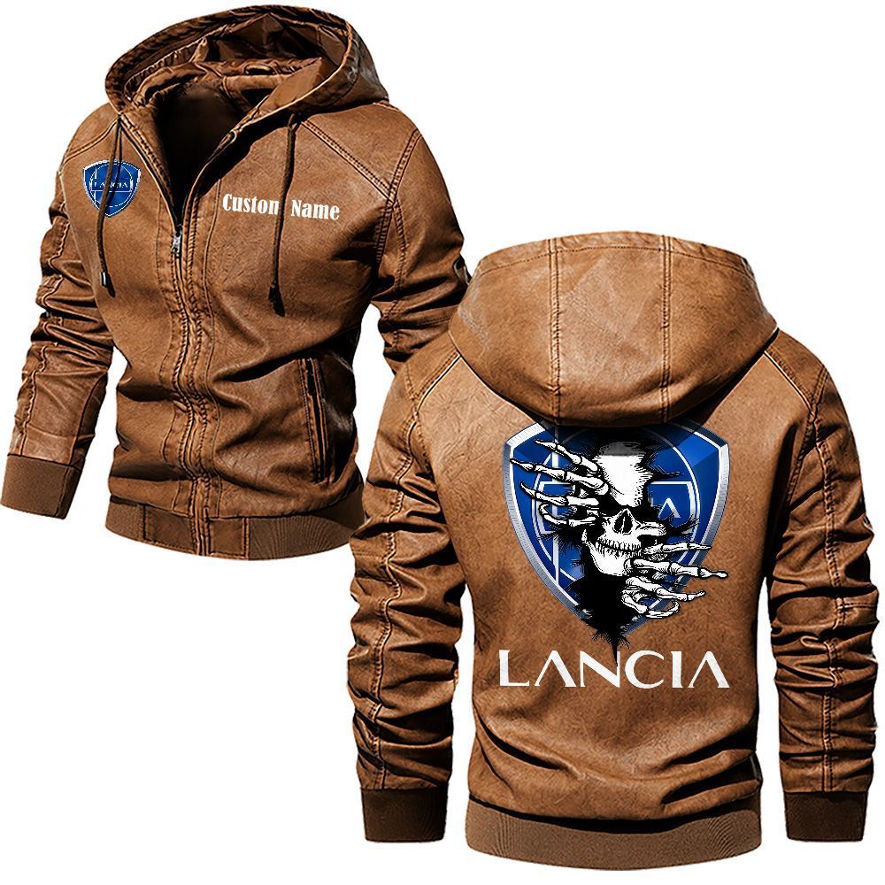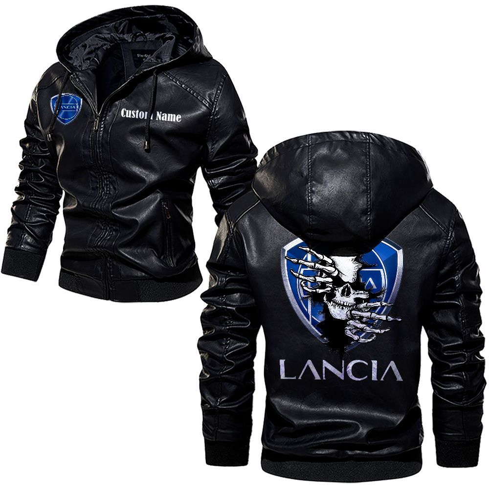 Lancia Custom Name Skull Biker Car Driver Personalized Leather Jacket For Men Women
