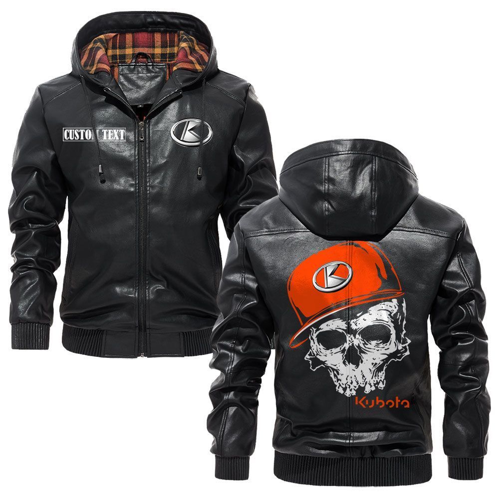 Kubota Logo Custom Name Leather Hoodie Jacket Warm Outerwear with Skull Design