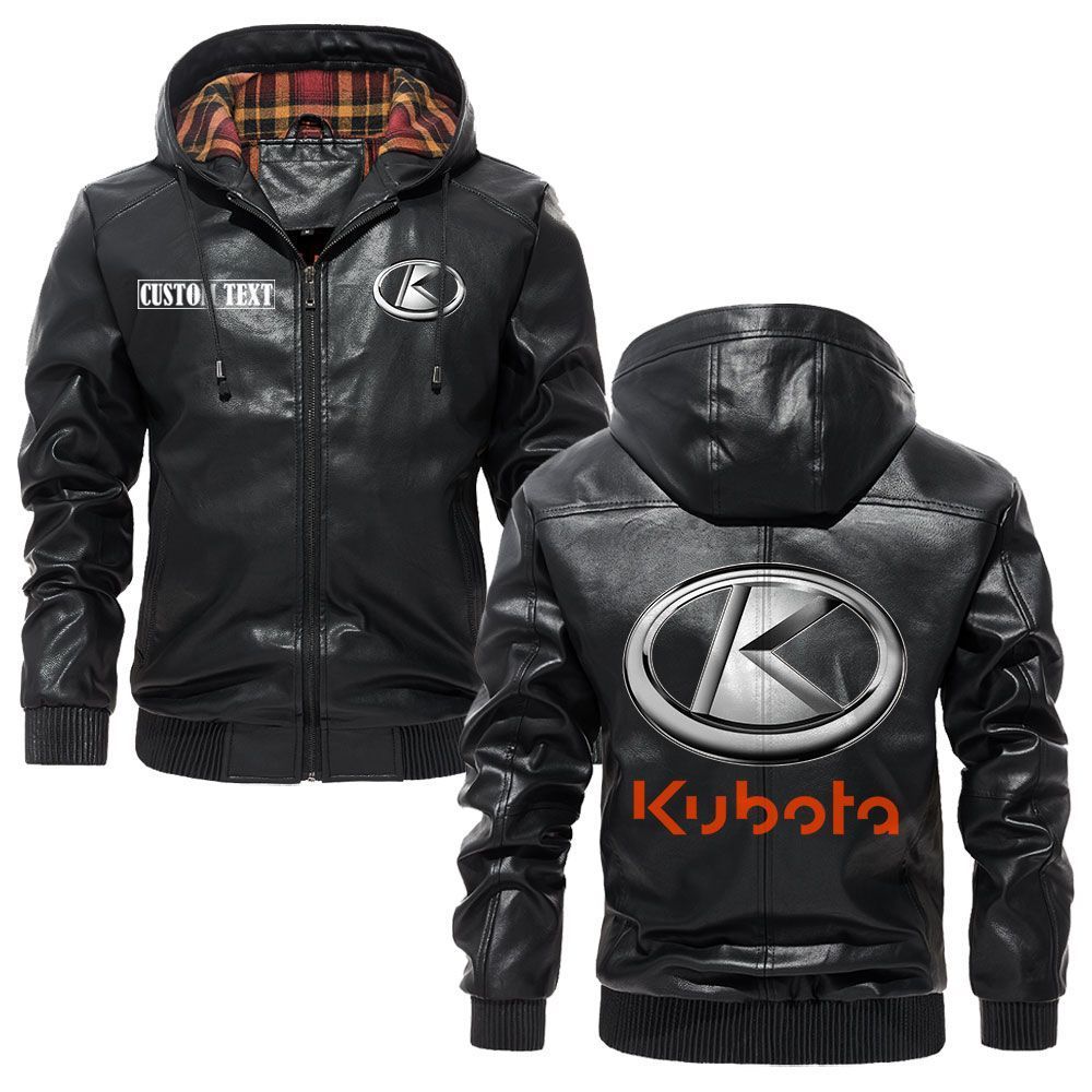 Kubota Logo Custom Name Leather Hoodie Jacket Comfortable Personalized Outerwear