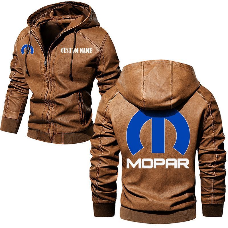 Mopar Logo Custom Name Leather Hoodie Jacket Comfortable Personalized Outerwear