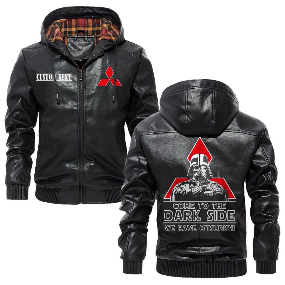 Mitsubishi Logo Custom Name Leather Hoodie Jacket Warm Outerwear with Star Wars Theme