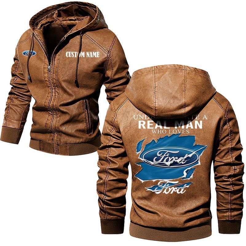 Never Underestimate A Real Man Who Loves Ford Leather Hoodie Jacket