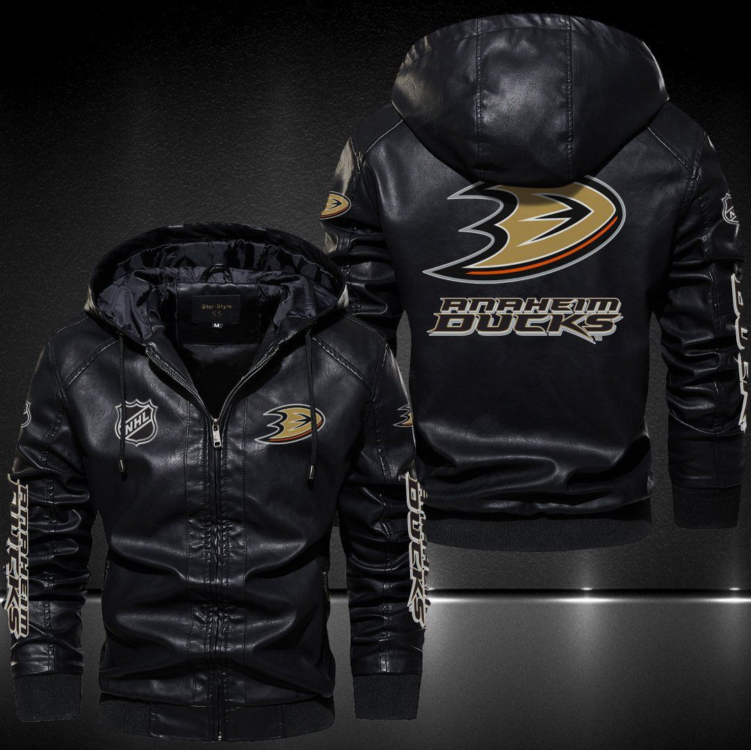 Anaheim Ducks Leather Hoodie Jacket