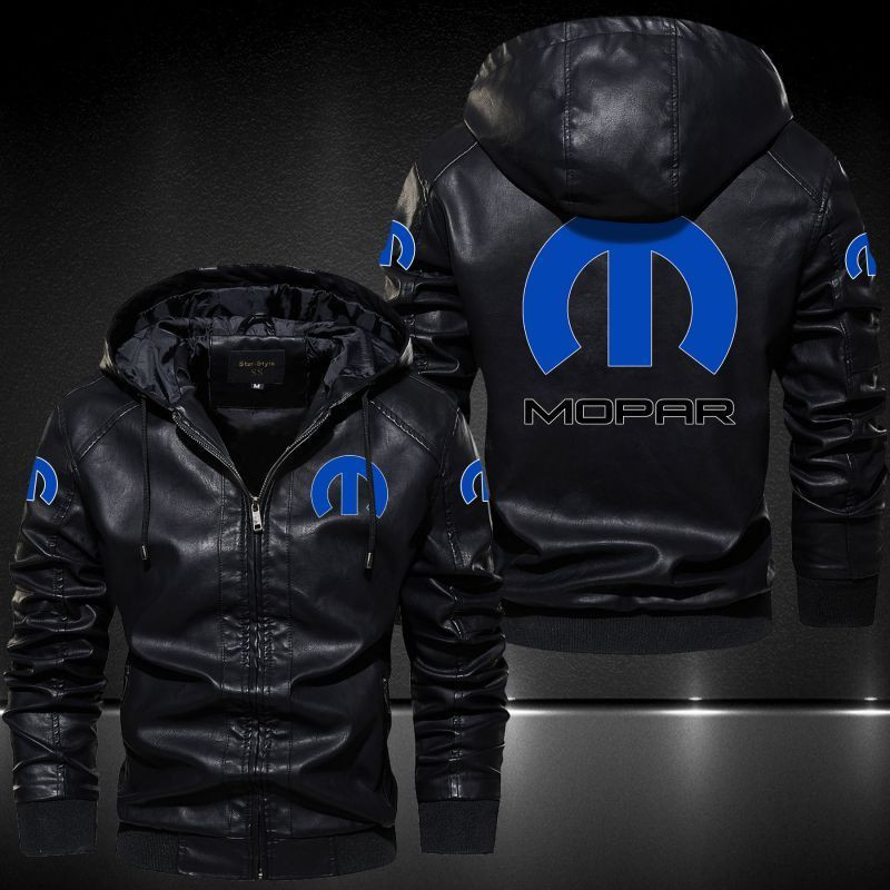 Cadillac Golden Logo Custom Hooded Leather Jacket Black quantity