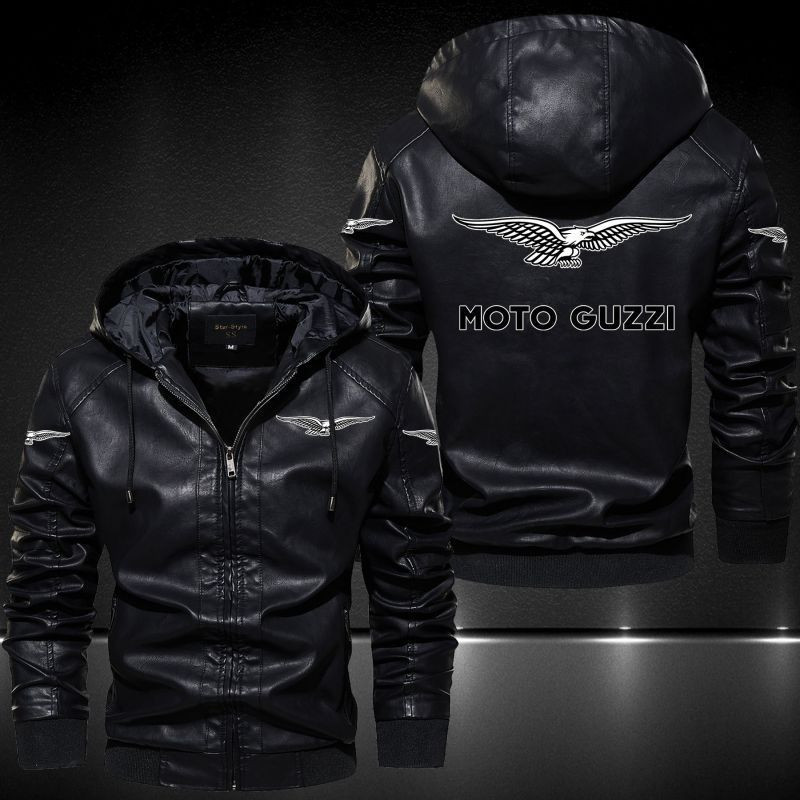 Aprilia Golden Logo Custom Hooded Leather Jacket Black quantity