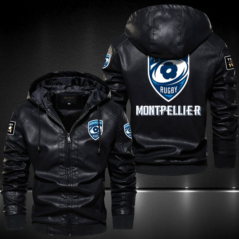 Montpellier Herault Rugby Leather Hoodie Jacket