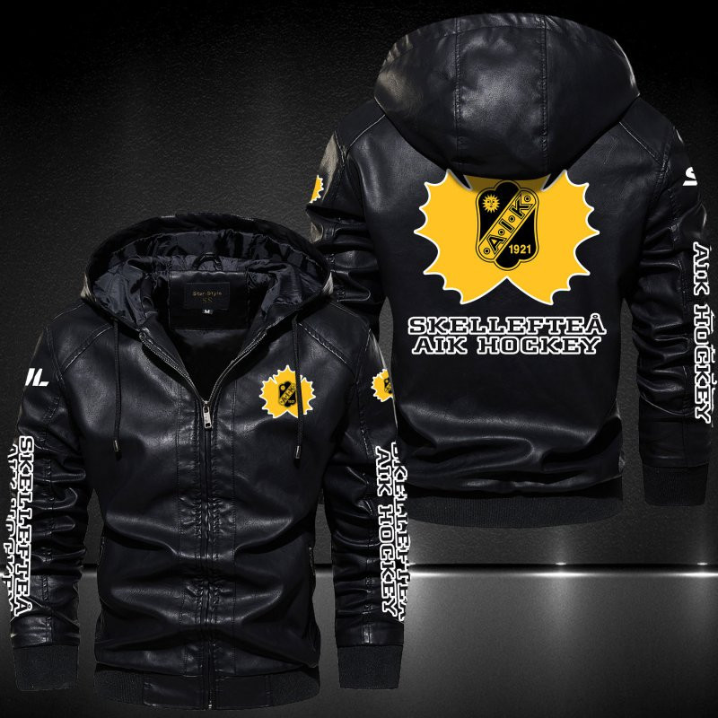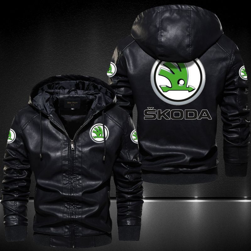 Skoda Golden Logo Custom Hooded Leather Jacket Black quantity