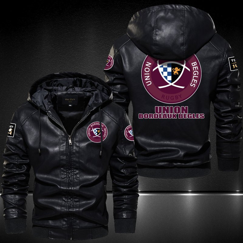 Beta Golden Logo Custom Hooded Leather Jacket Black quantity