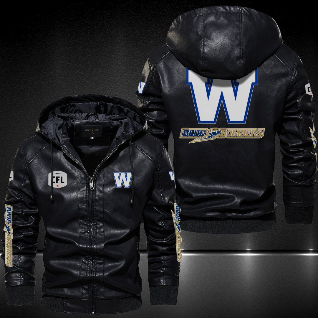 Winnipeg Blue Bombers Leather Hoodie Jacket