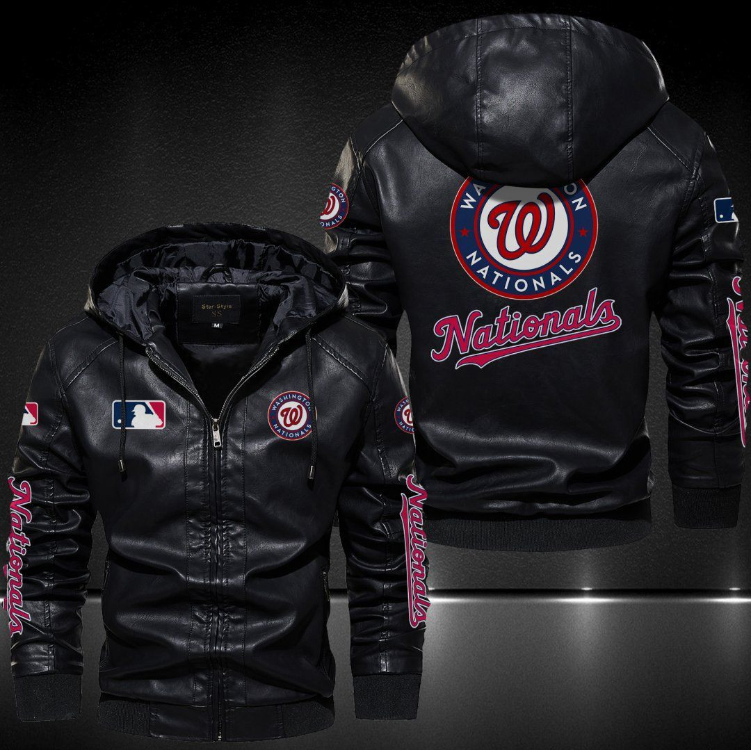 Washington Nationals Leather Hoodie Jacket