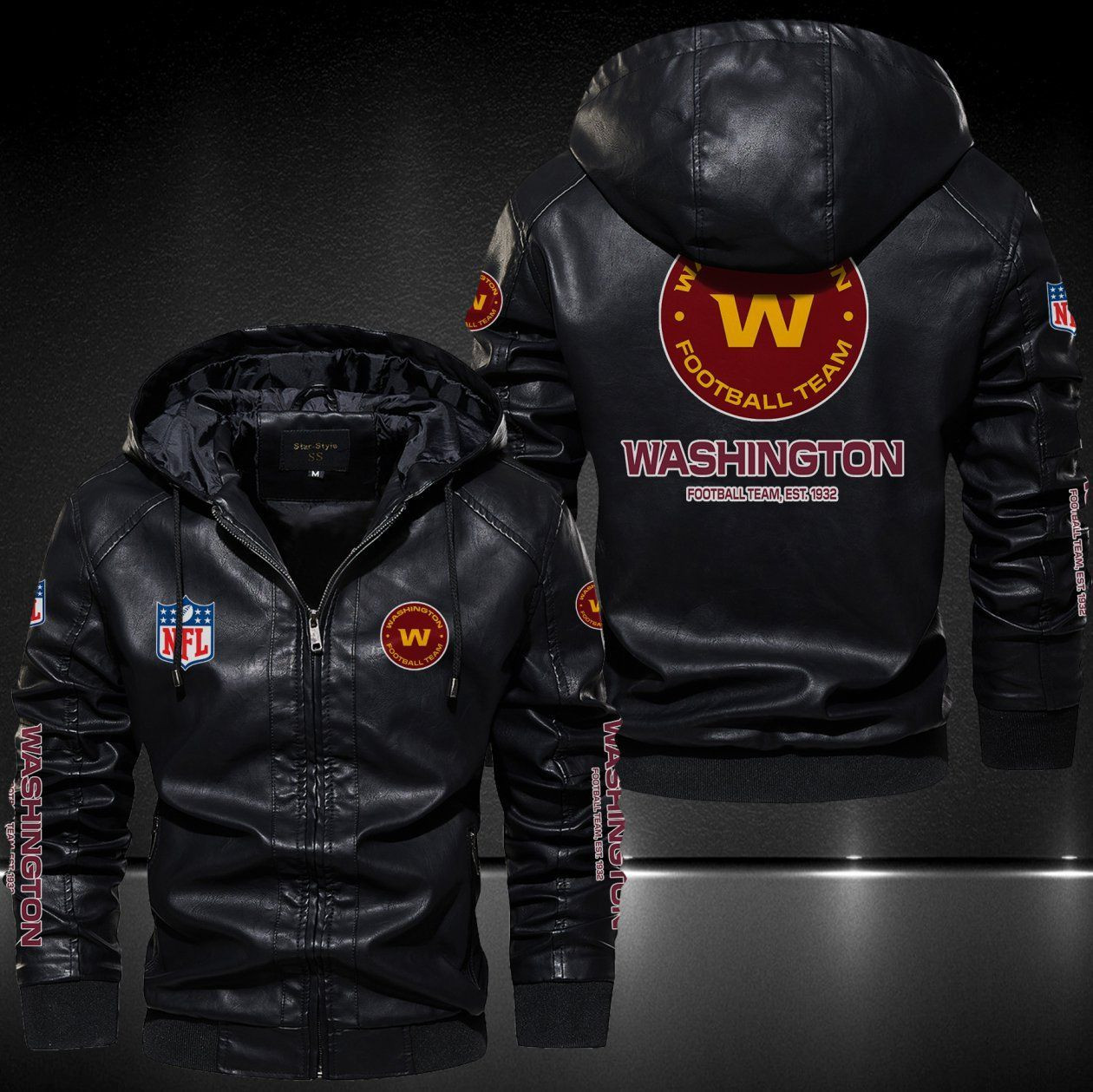 Washington Football Team Leather Hoodie Jacket