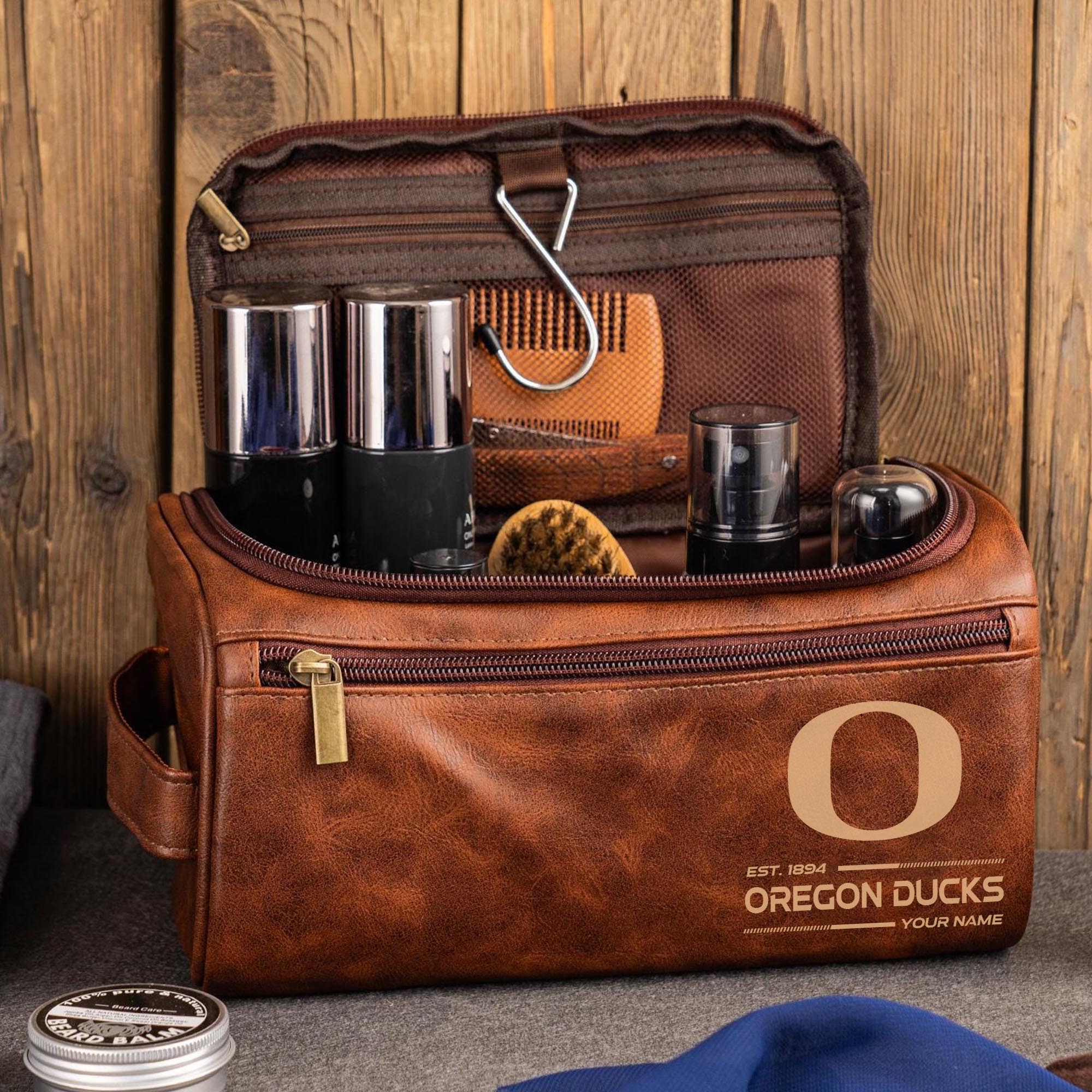 Oregon Ducks Leather Toiletry Bag, Fishing Leather Toiletry Bag