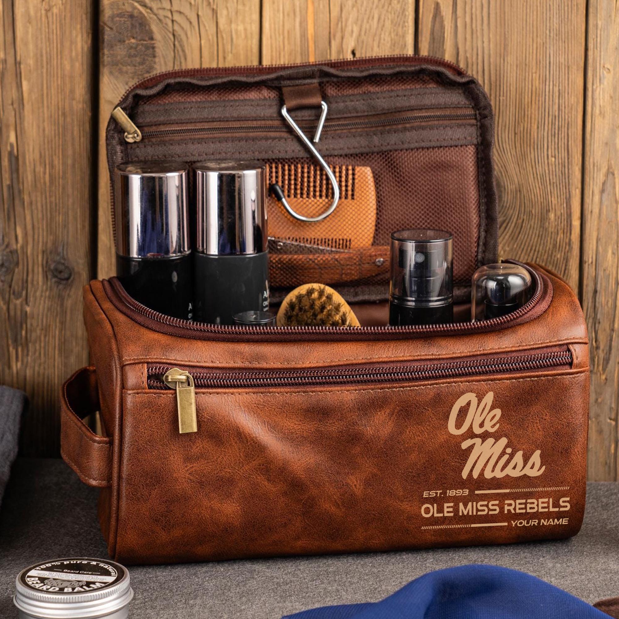 Ole Miss Rebels Leather Toiletry Bag, Fishing Leather Toiletry Bag